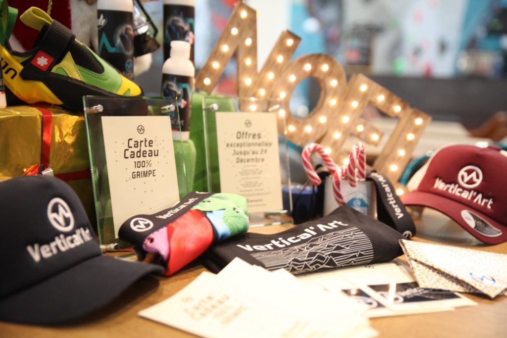 Cette année nous vous proposons d’offrir à vos proches un cadeau atypique et sportif avec les cartes cadeaux Vertical’Art ainsi que les traditionnels T-shirts Vertical’Art, chaussons Ocun, casquettes, porte clef VA, magnésie liquide…