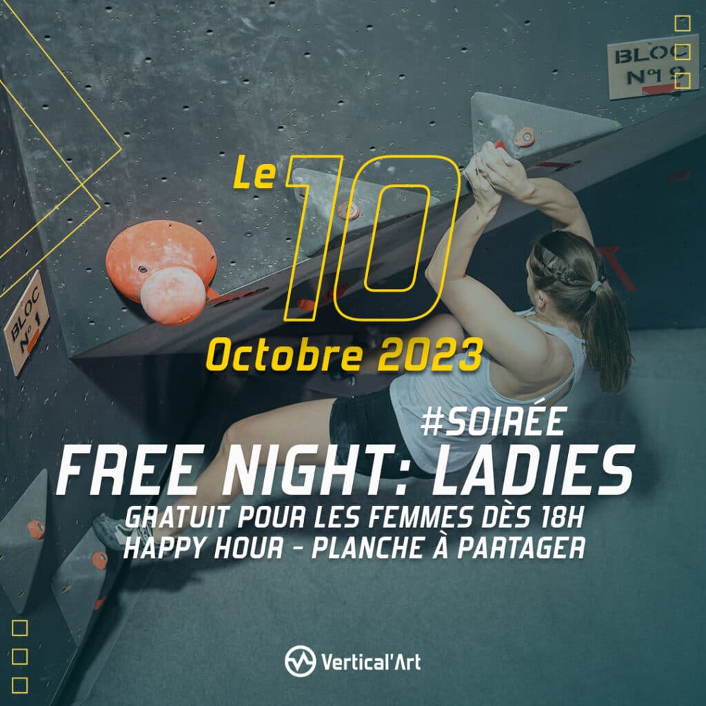 Envie de trouver un nouveau sport, (re)découvrir l’escalade de bloc et grimper gratuitement ? Honneur aux dames, alors rendez-vous mardi 10 octobre dans notre salle d’escalade Vertical’Art Nantes pour la première de nos nouvelles soirées Free Nights. Pour la première de ces deux soirées, ce mardi 10 octobre, la séance de bloc sera gratuite pour tous les femmes dès 18h, et ce, jusqu’à la fermeture. La seconde, jeudi 12 octobre, permettra quant elle aux hommes de grimper gratuitement, également à partir de 18h.