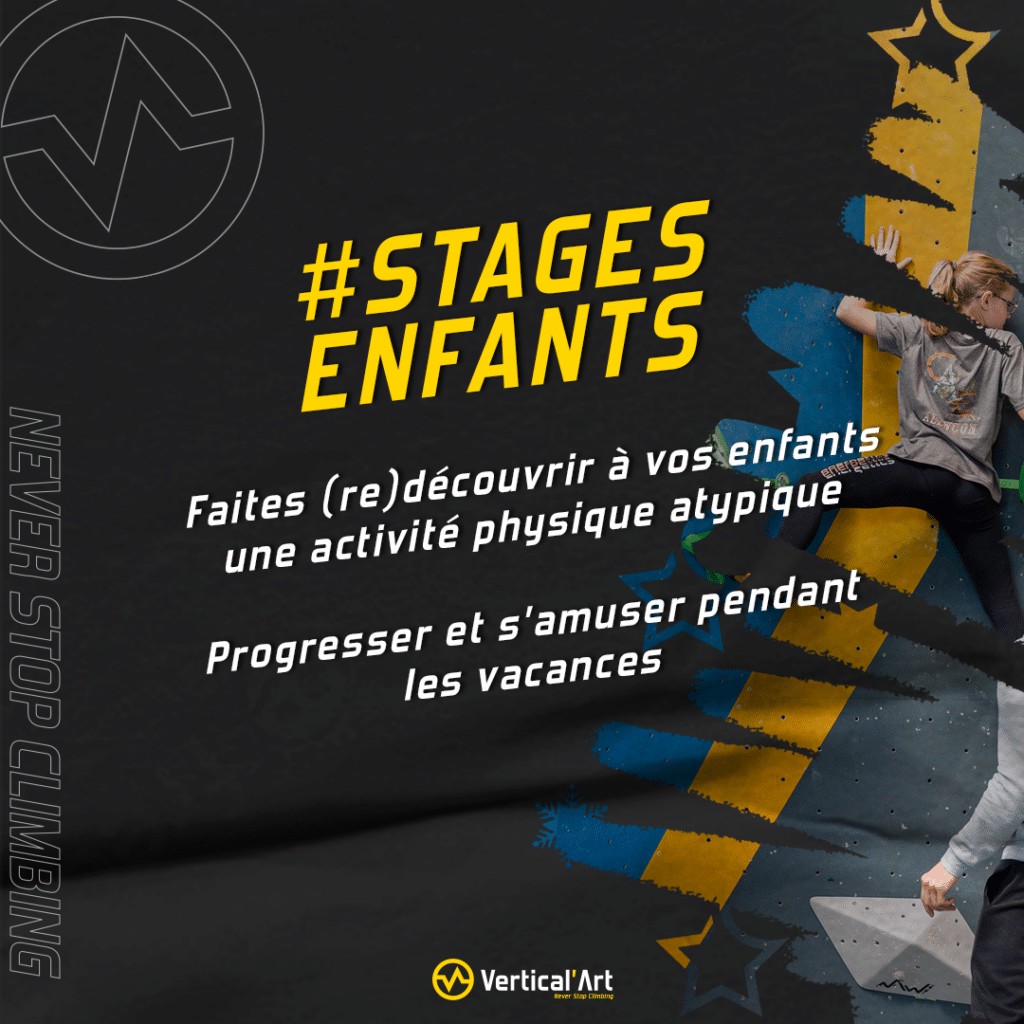 Les fêtes approchent et Vertical’Art Nantes a prévu des stages d’escalade pour vos enfants du 23 au 28 décembre et/ou du 30 décembre au 04 janvier.