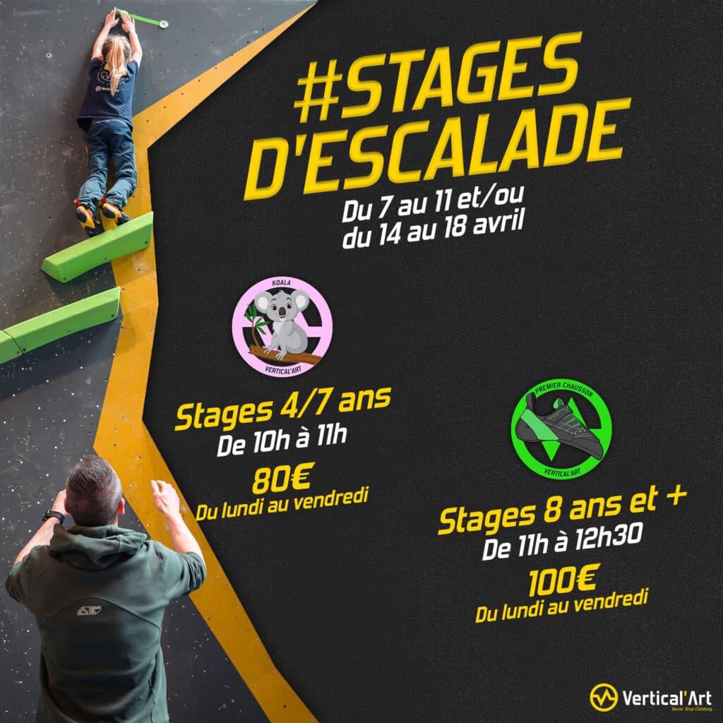 Du 7 au 11 avril et/ou du 14 au 18 avril, Vertical’Art Nantes organise des stages spécialement adaptés aux jeunes grimpeurs, encadrés par nos moniteurs passionnés et expérimentés.